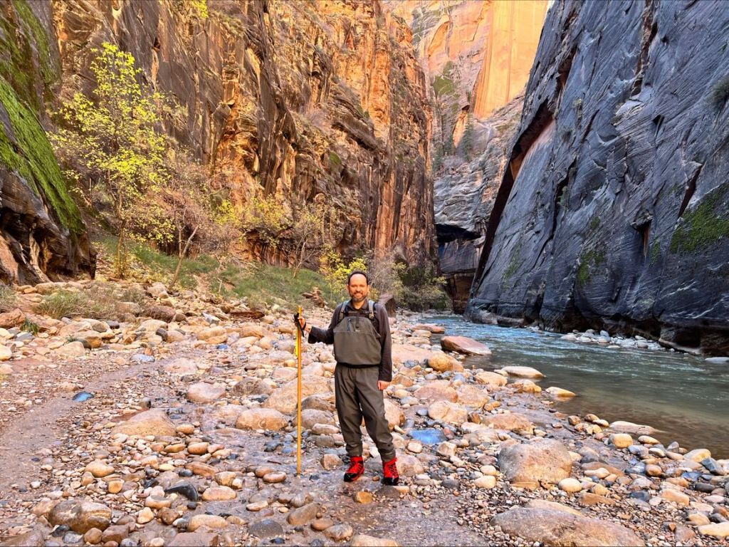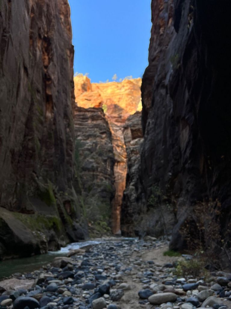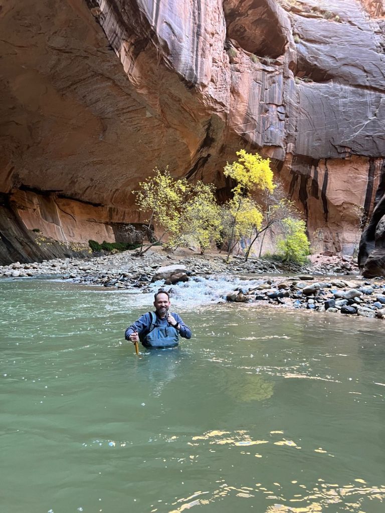 Hiking helps me recenter, appreciate things larger than myself, and focus on the NOW… like today’s hike up The Narrows where we got chest deep in the Virgin River. In very cold water.